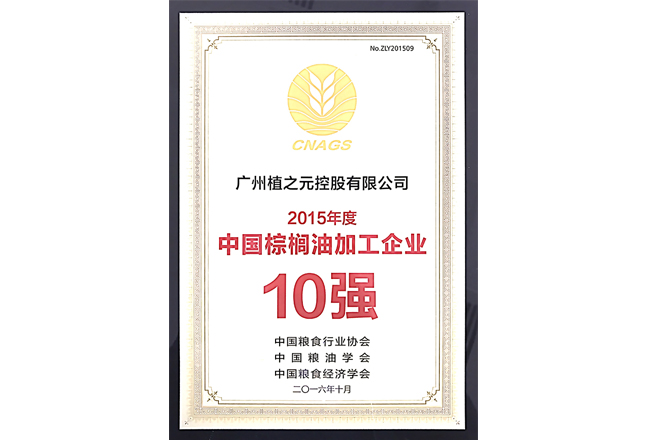 2015年度中国棕榈油加工企业10强